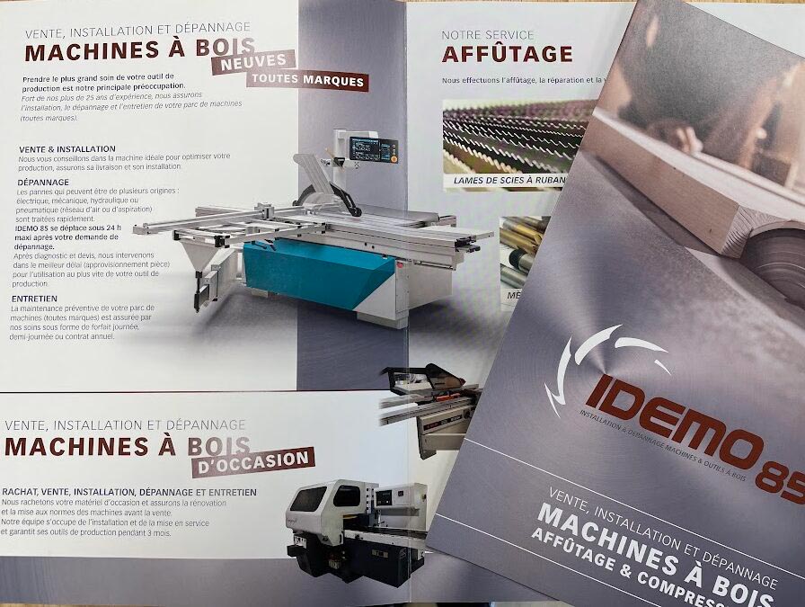 Notre nouvelle plaquette est enfin disponible. En plus des services habituels, IDEMO85 propose désormais la vente de machines à bois neuves et d’occasion.